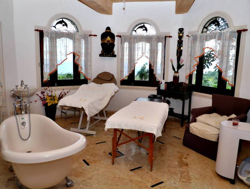 The Golden Dolphin Estate is not a hotel but a private villa for you and your guests. When you stay at The Golden Dolphin, you have the entire estate all to yourselves. The estate is located on a hillside with panoramic views of the ocean and surrounding tropical rainforest. 100 acres of lush, beautiful organic gardens, a cacao plantation, your own private spa, 2 pools, billiards tables, tennis court and your own regulation sized baseball field! With 9 bedrooms and 10 bathrooms, there is room for the entire family. 8 of the worlds most beautiful beaches nearby allow you to enjoy a sunset cruise on the Marlin Chaser to end your day. We also offer deep sea fishing excursions, snorkeling, whale watching and more. You can choose to go kite boarding or go on a guided hike to see waterfalls, cliff diving and swimming. Horseback riding is offered nearby as well as an array of other adventures to set off upon. The Golden Dolphin is the perfect location for corporate retreats, family reunions, weddings, honeymoons, yoga retreats, vacations and daily events. The possibilities are endless! Book your stay today to take advantage of what The Golden Dolphin has to offer!